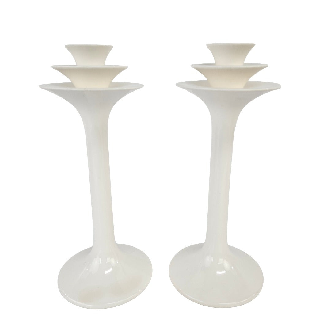 PAIR of rare mid-century modern white ceramic candleholders by Fitz & Floyd, in very good vintage condition.