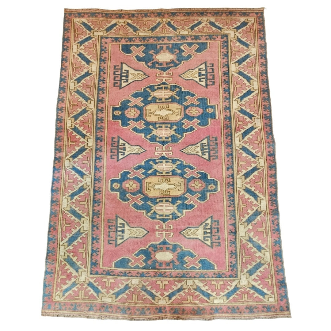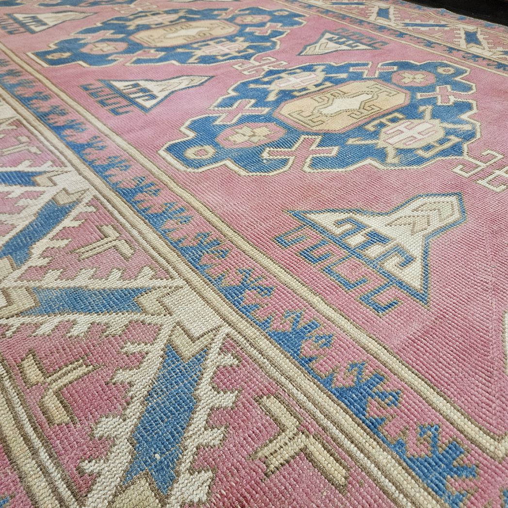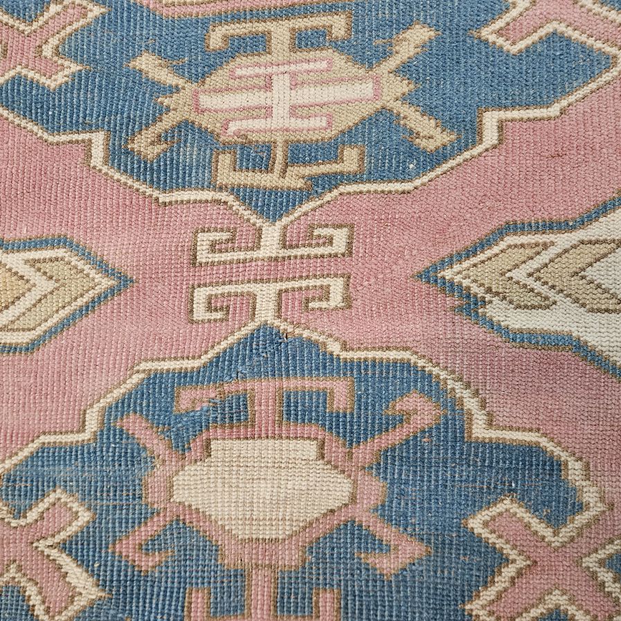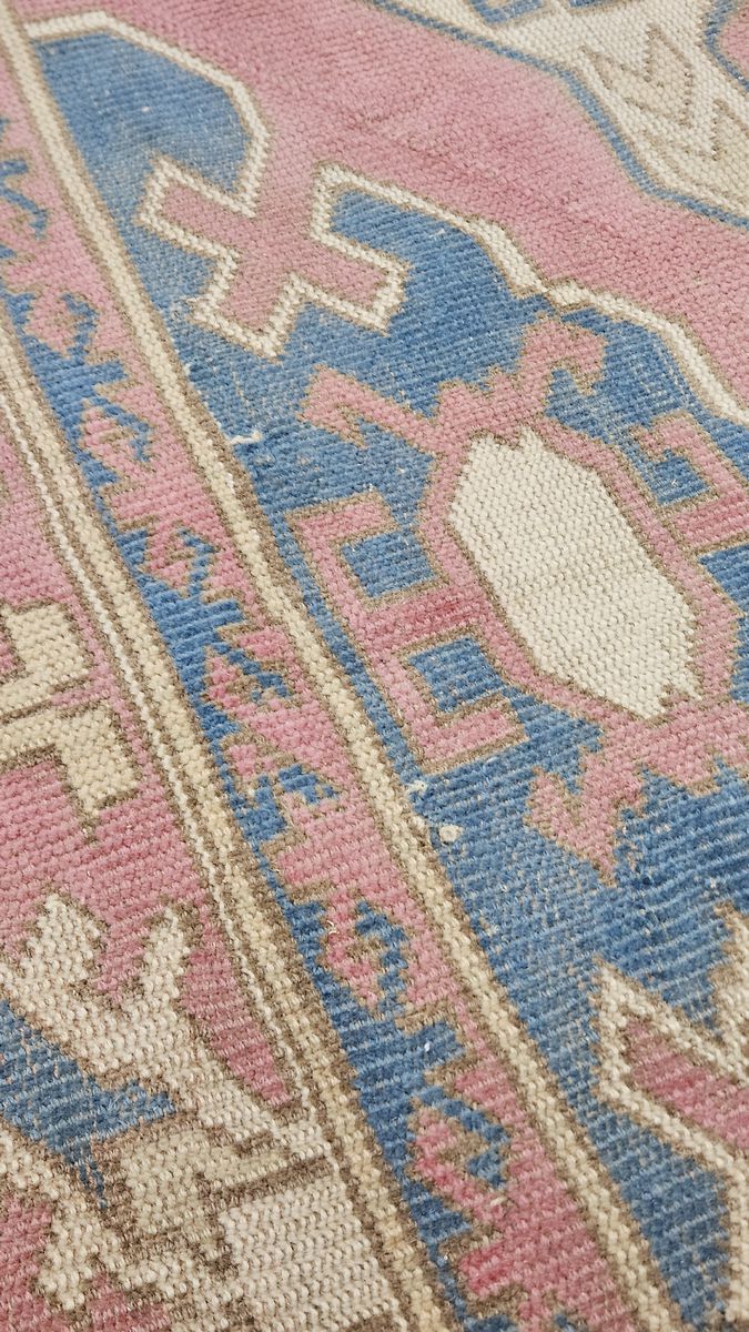 Pink & blue rug | Crafted from high-quality materials, this rug offers unparalleled comfort and durability. Professionally cleaned & restored vintage handwoven rug. It is in excellent condition and ready to be used for the first time by its new owner.