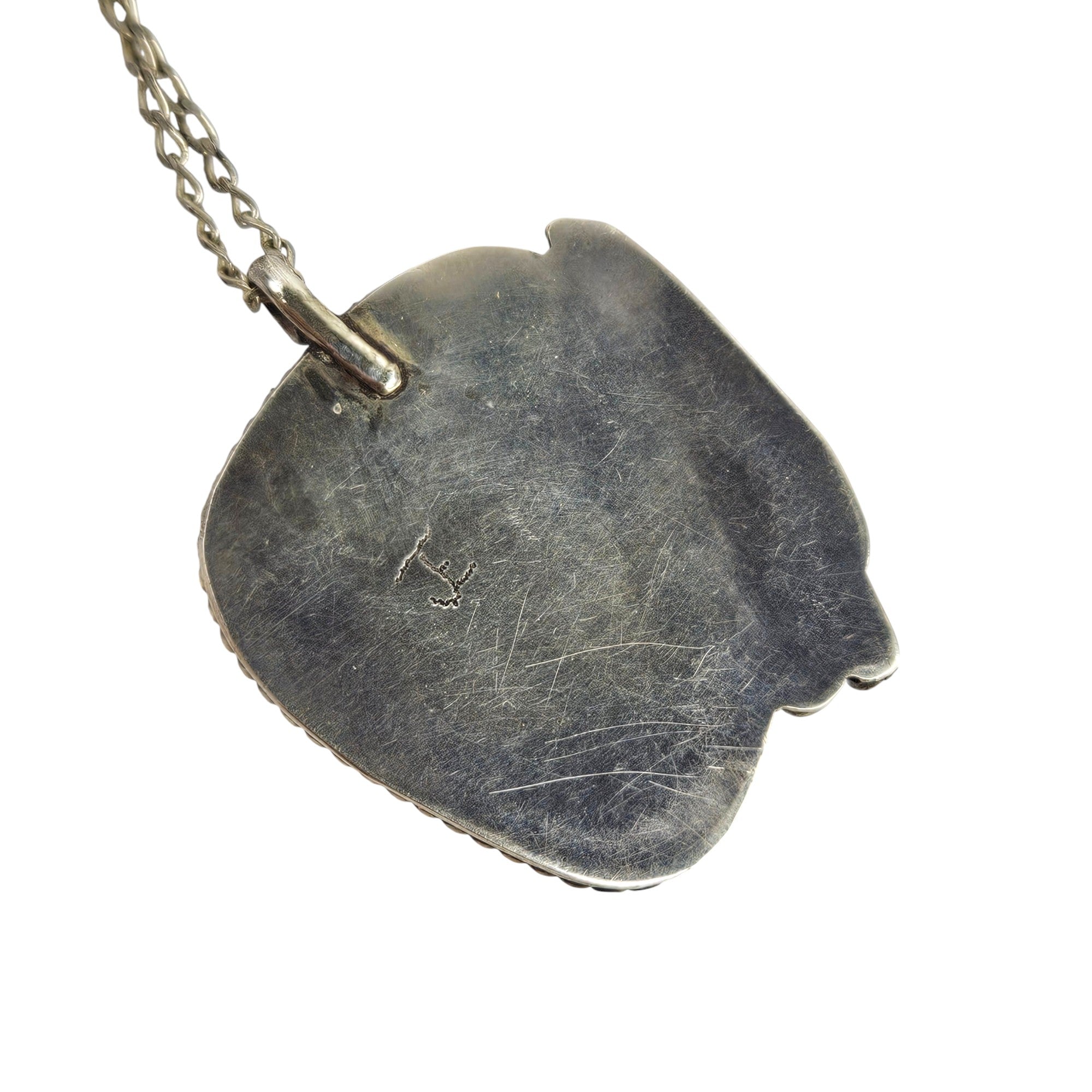 Handmade vintage sterling silver and turquoise pendant with rope bezel and Southwestern feather detail, in excellent vintage condition. Made by a Midland, Texas artist and stamped JE on the back.