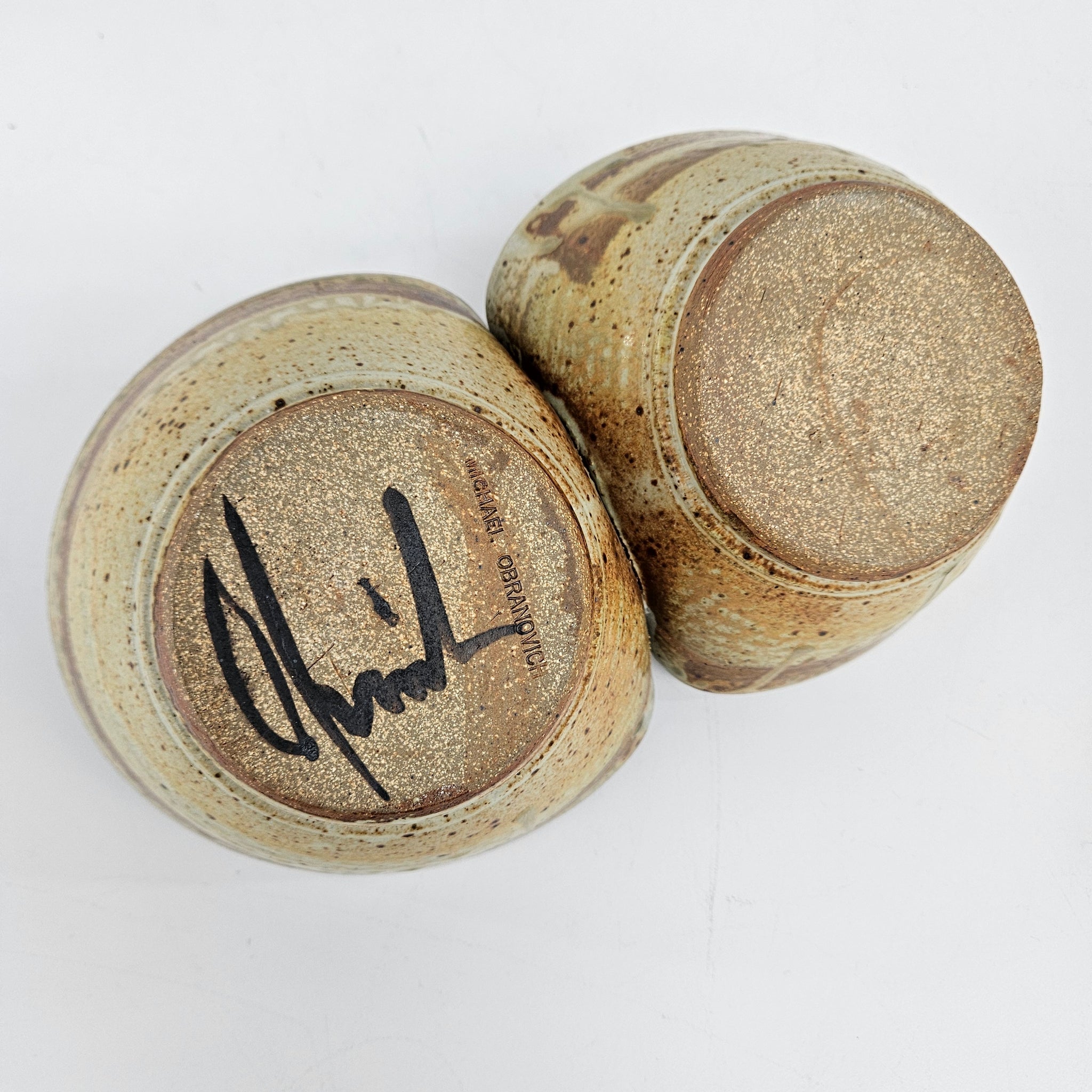 Handmade divided condiment or snack bowl dish made by Texas pottery Michael Obranovich. Microwave, oven and dishwasher safe, it is in excellent secondhand condition. Retails $48.
