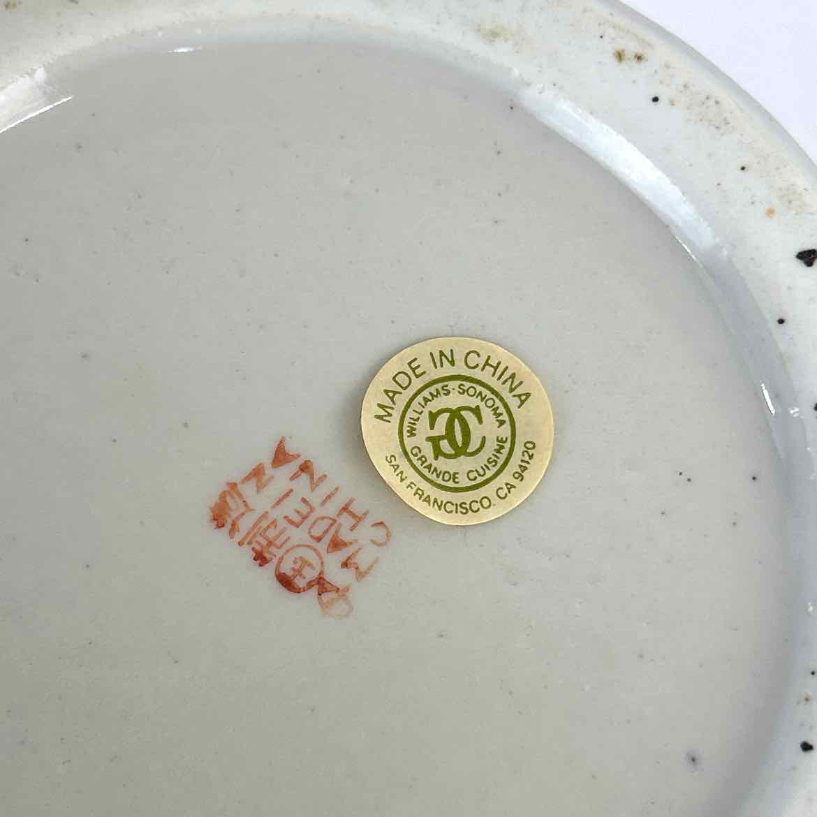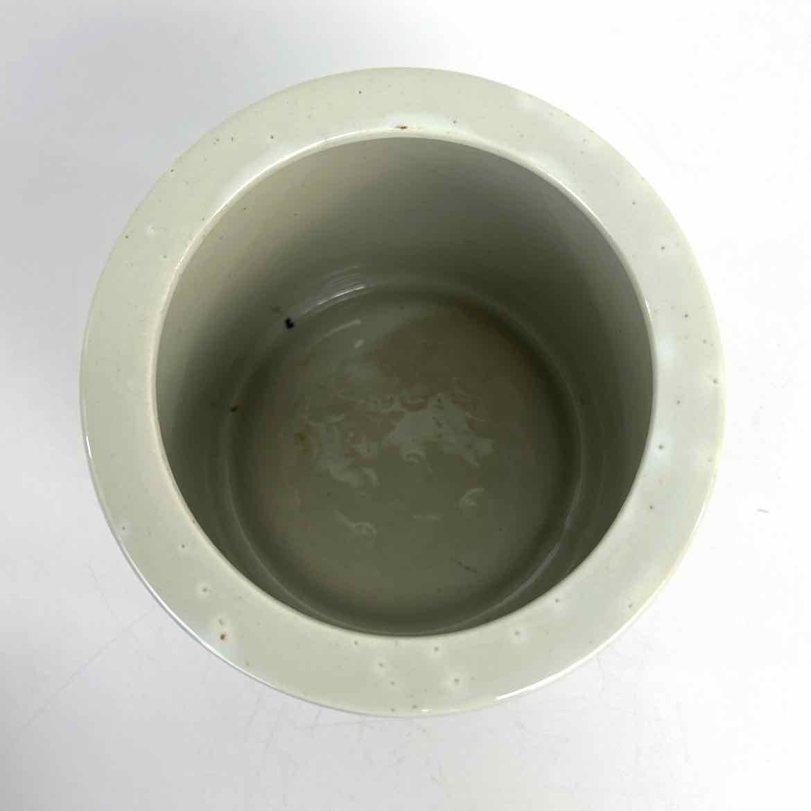 Colorful Chinese ceramic vase or utensil holder with grape leaf designs purple, periwinkle green and yellow glaze, made by Williams-Sonoma. In very good vintage condition and clean.