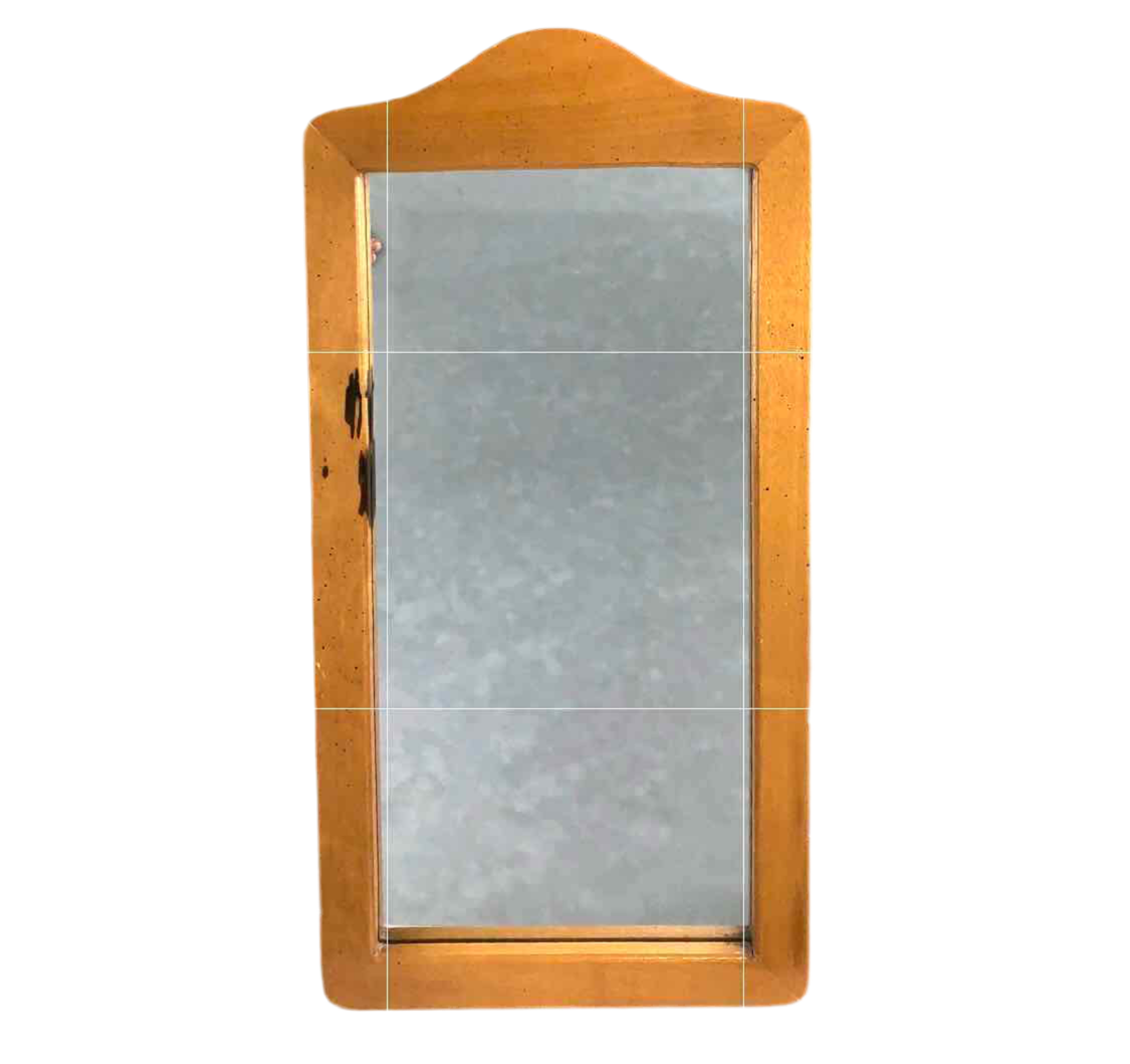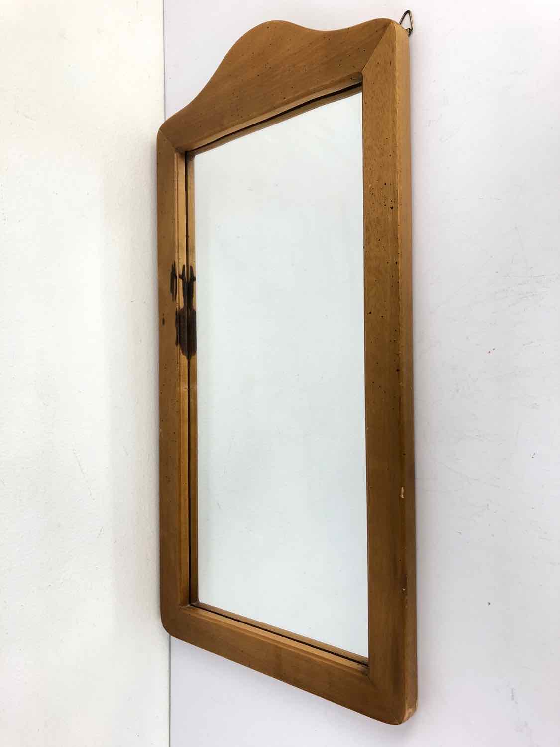 Vintage solid wood wall hanging mirror made in Taiwan for Centurion Los Angeles, c. 1980. In very good vintage condition with some discoloration and speckling on the finish and d-ring metal hangers on the back.