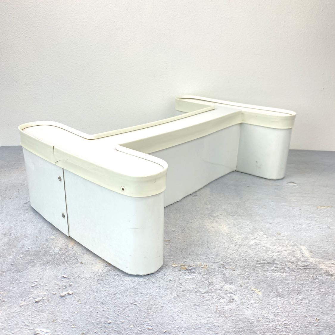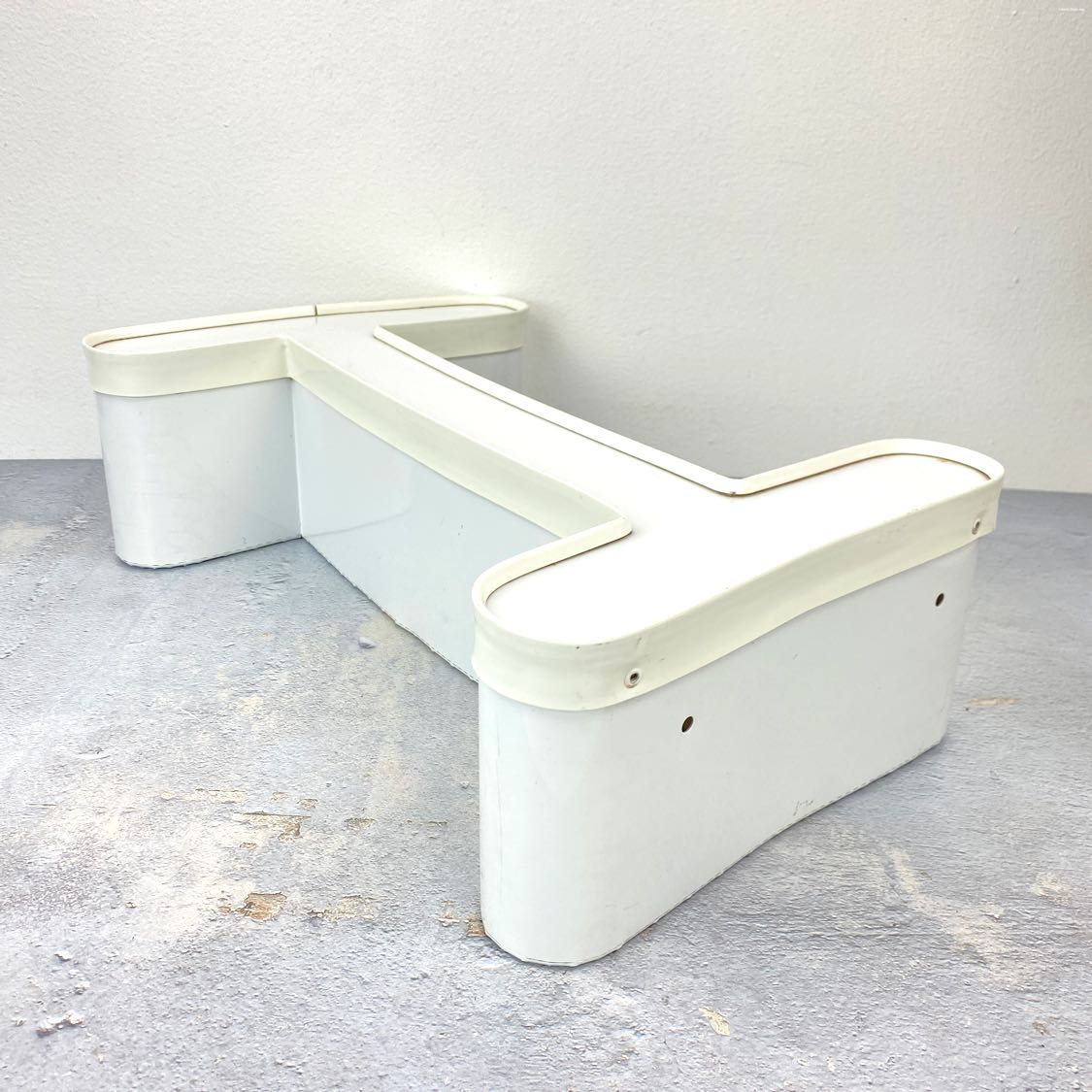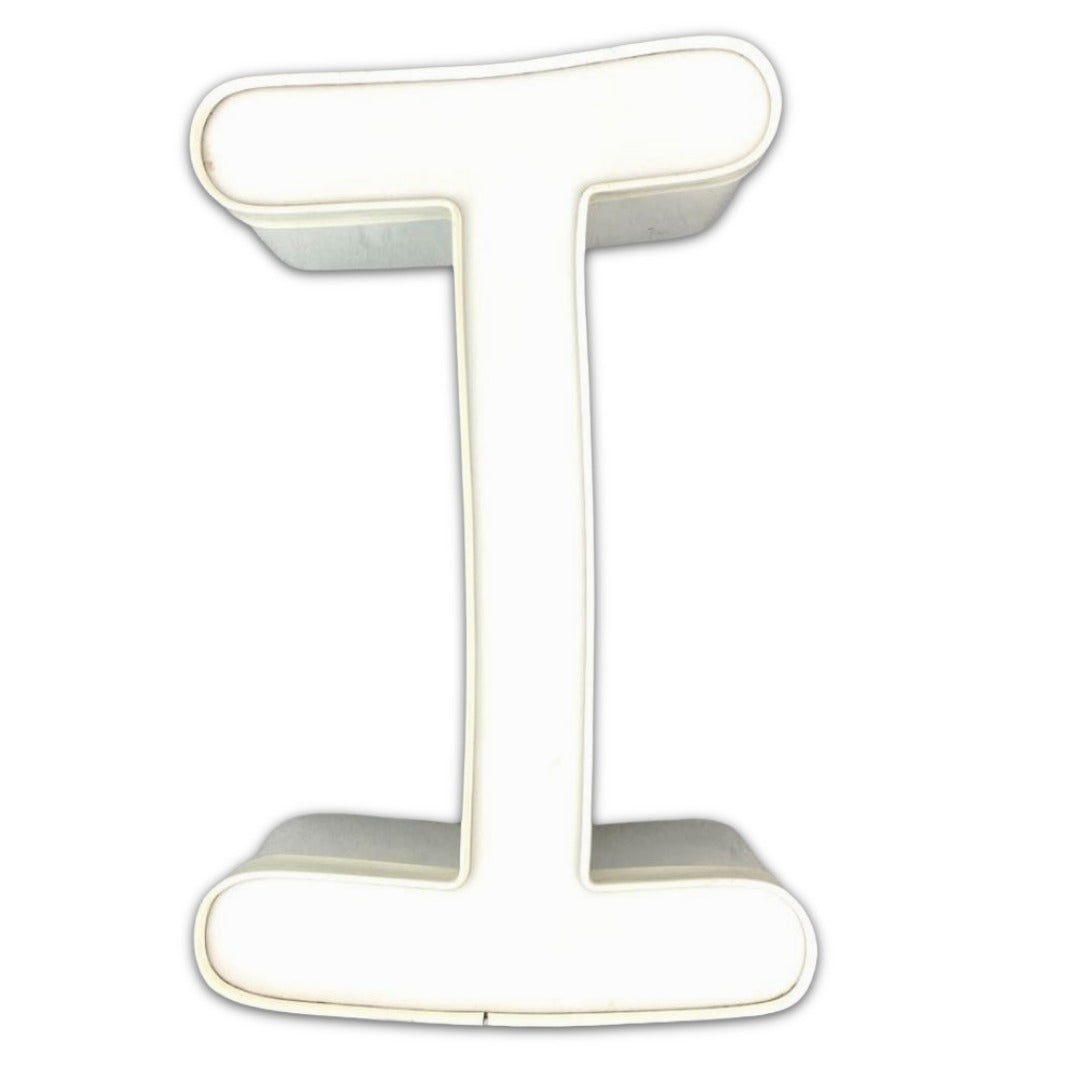 Uppercase letter I channel letter with a white aluminum body and white plastic face and trim. In very good vintage condition, recently cleaned and a fun rounded font.
