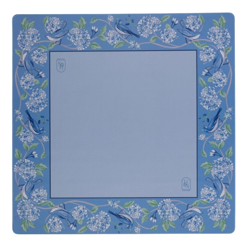 Blue Hydrangea | Our beautifully designed mahjong table mat features a non-slip neoprene backing. The design side showcases a silk-like material making it easy to slide cards and mahjong tiles across the table with ease.