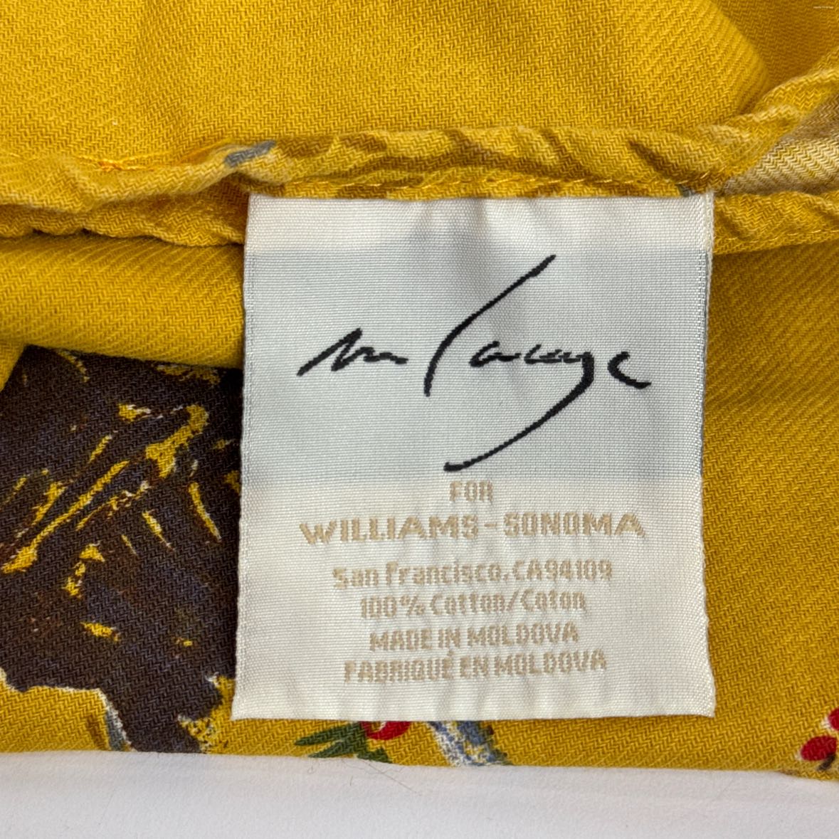 Goldenrod yellow round tablecloth from Williams-Sonoma with vintage farmhouse rooster design, made of 100% cotton in Moldova and in very good vintage condition.