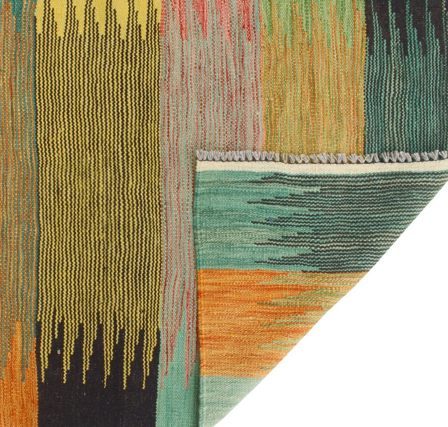 Winchester Anastaci | Brand new hand woven geometric kilim that would fit in perfectly in a modern Southwest space. Excellent condition. All rug sizes are approximate, this one is 5'7" x 7'10".