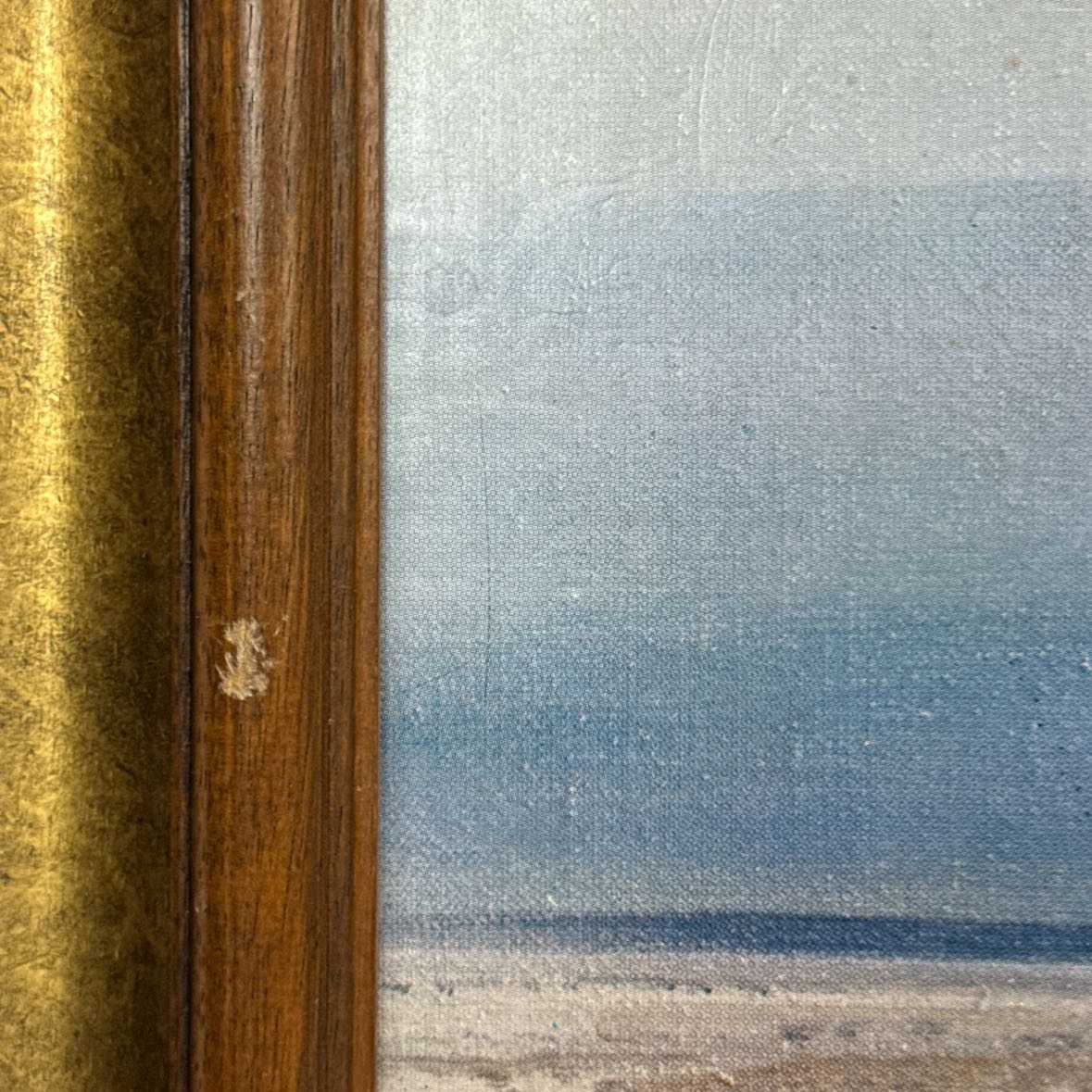 Large and striking landscape print of Desert Scene 30 by Peter Ellenshaw (1913-2007), framed in a wooden frame and ready to hang with sawtooth hangers. In very good vinnage condition with some scuffs to the frame as shown.