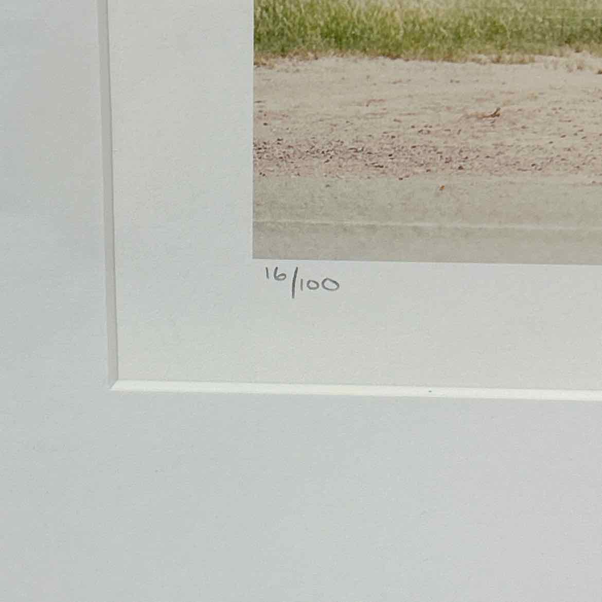 Prada Marfa West Texas print | Framed & matted limited edition 9x12 fine art photo print by Midland, Texas artist Kayla Barker. Signed and numbered in an edition of 100. The frame is a blue tone modern minimal faux wood & hangs with sawtooth hangers.