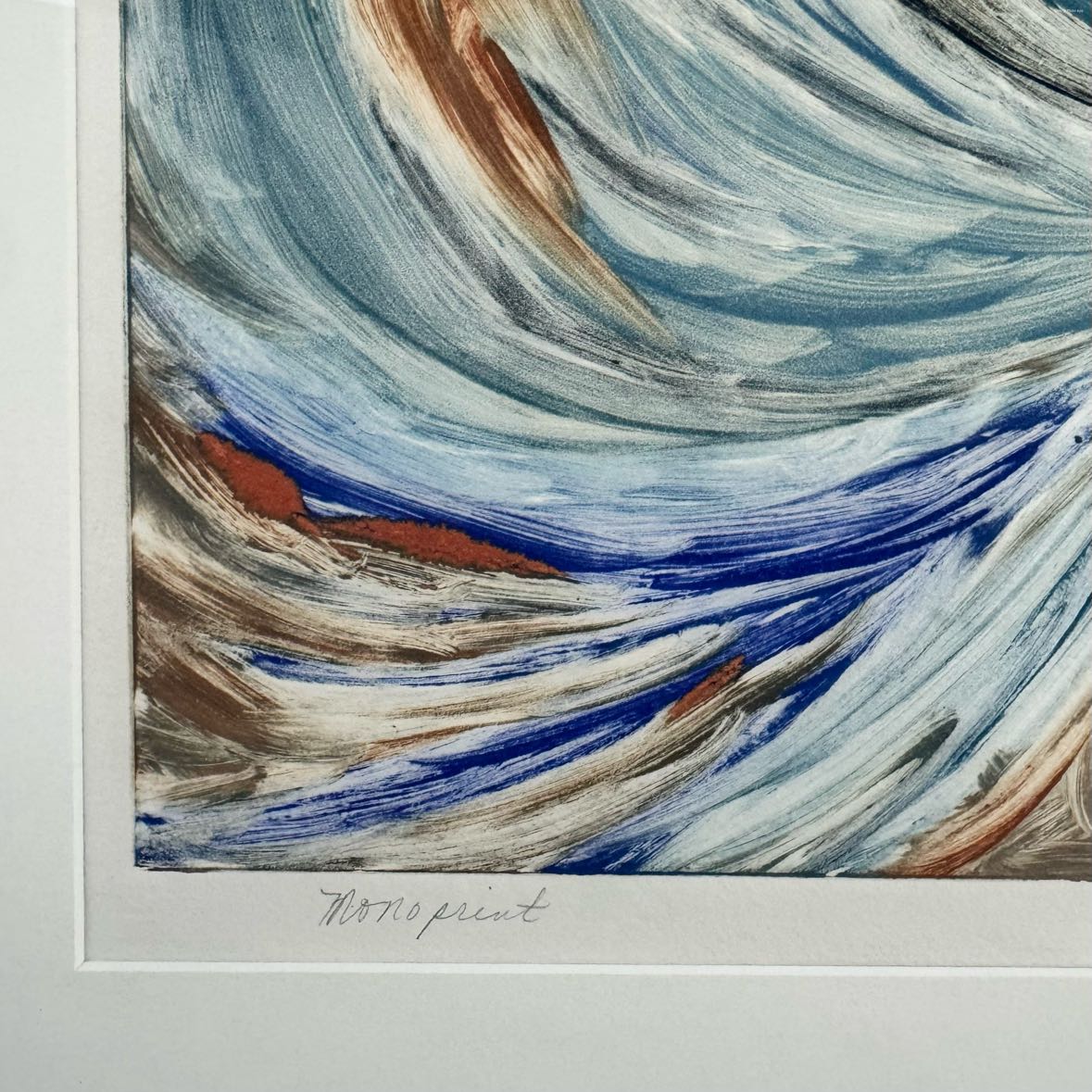 Large framed monoprint by artist Norma Darby featuring swirls in various colors. Professionally framed and ready to hang, in excellent vintage condition.