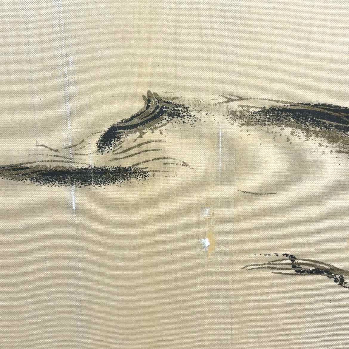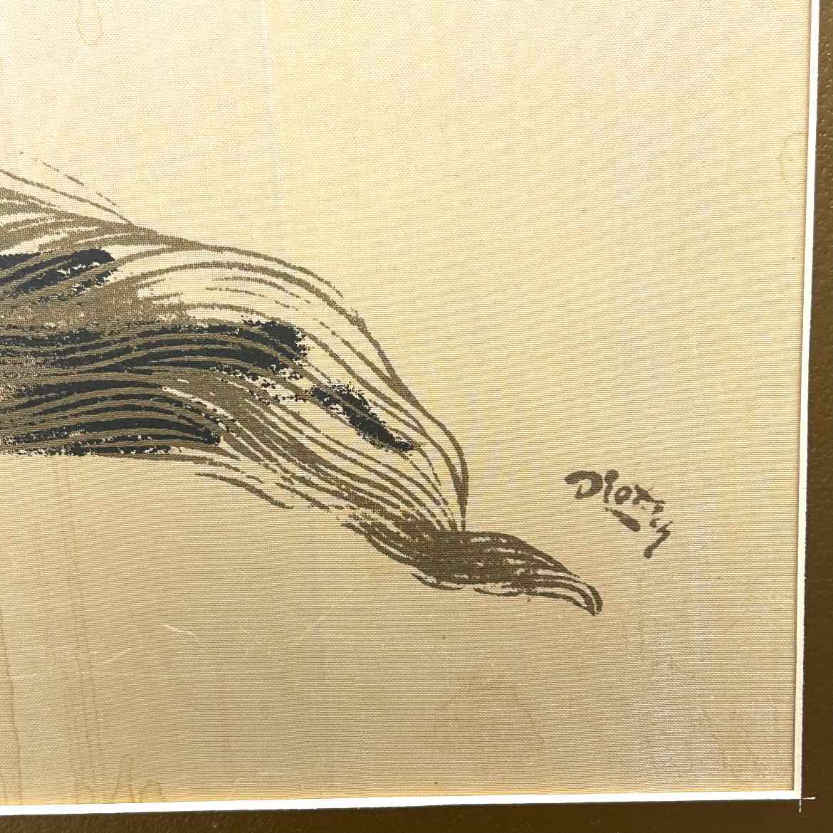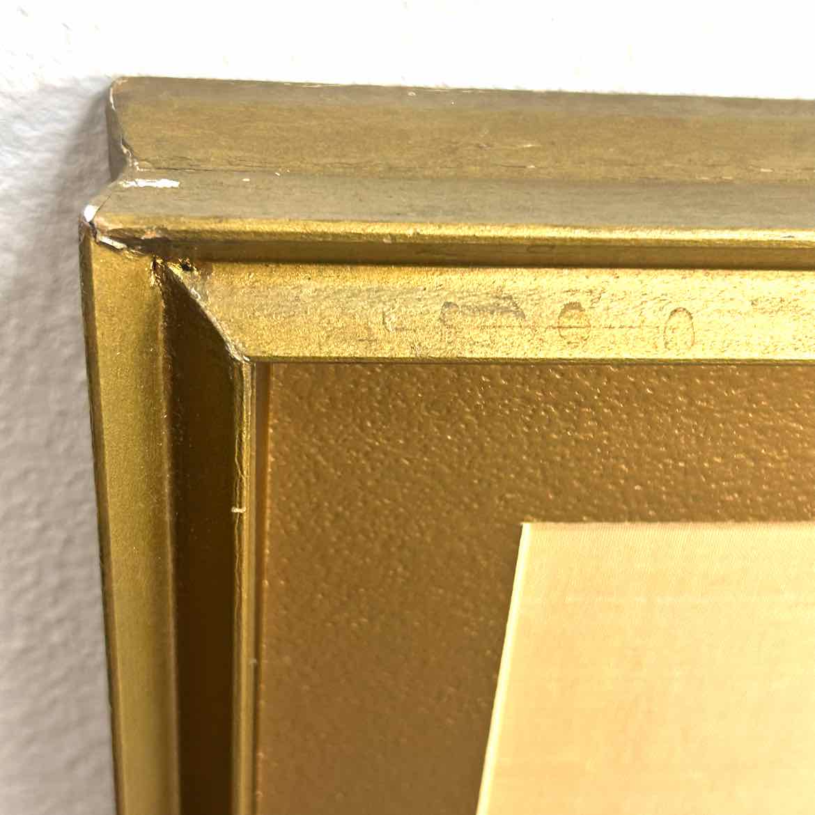 Huge Asian wall panel print of a tree with a gold background & gold frame. It has a few small chips here and there, and the matting job was done in sections, unusually, but it is in otherwise a great statement piece in very good condition! D-ring hangers.