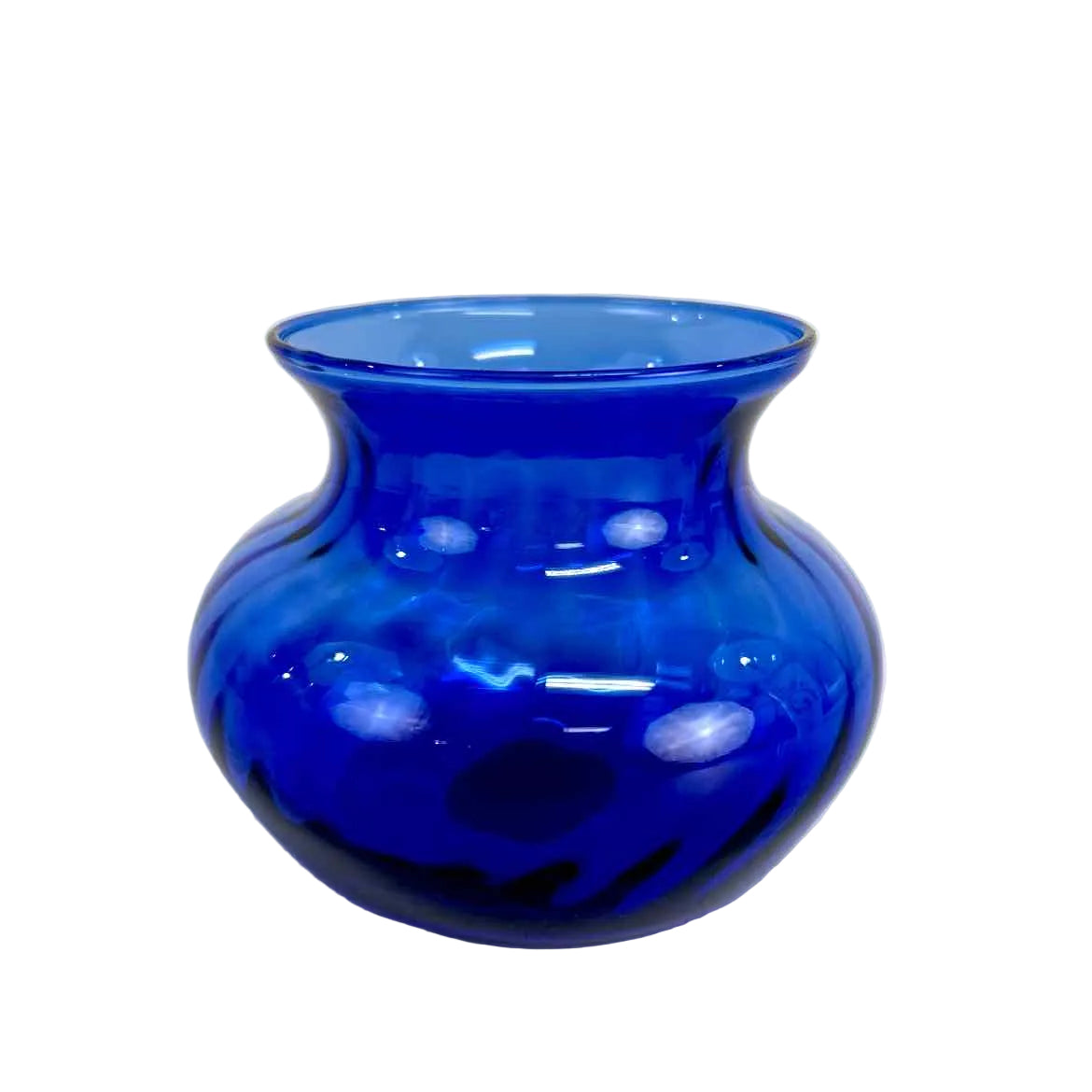 Vintage cobalt blue glass swirl vase made by Indiana Glass, in excellent vintage condition and perfect for propagating plant cuttings on a sunny windowsill.
