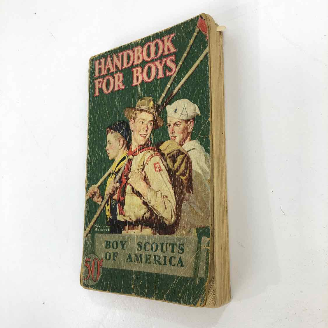 Boy Scout Handbook, printed in 1948. This vintage softcover book has visible signs of use but is a great collector piece and in overall fair vintage condition. Has a name written in it, and heavy cover wear.