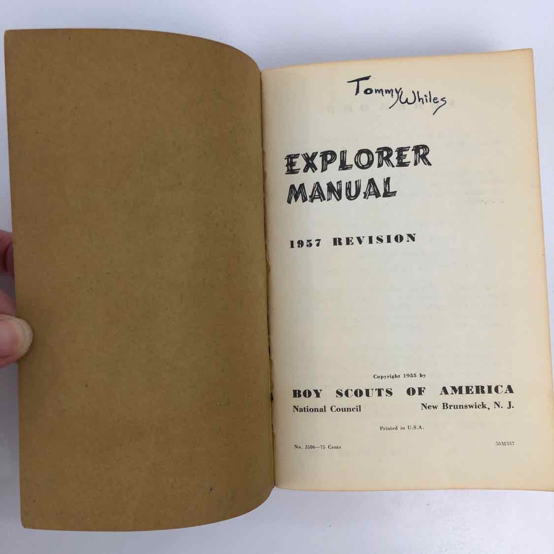 Boy Scouts Explorer Manual book, printed in 1955. This vintage softcover book has signs of use but is a great collector piece and in overall very good vintage condition. Has a name written in it, and some light cover wear.