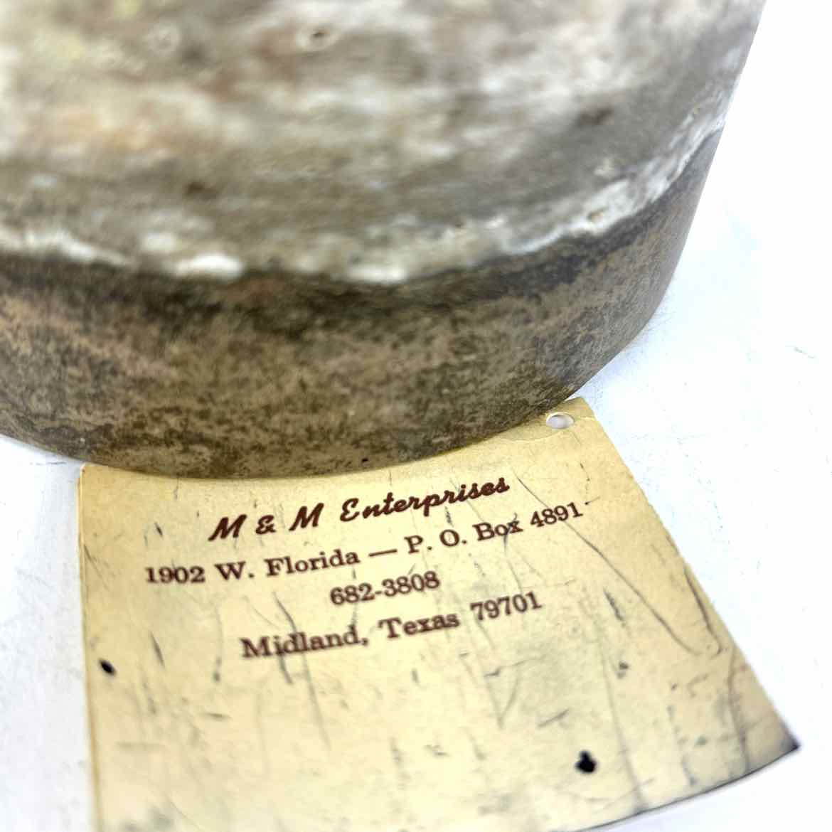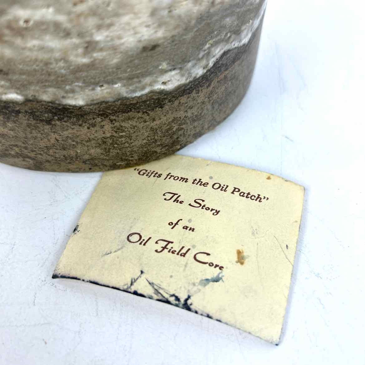 Heavy core sample vase or utensil holder with yellow sulfur inclusions, in excellent vintage condition with original brochure inside and green felt liner underneath. Originally sold from M&M Enterprises in Midland, Tx. Weighs over 7 lbs.
