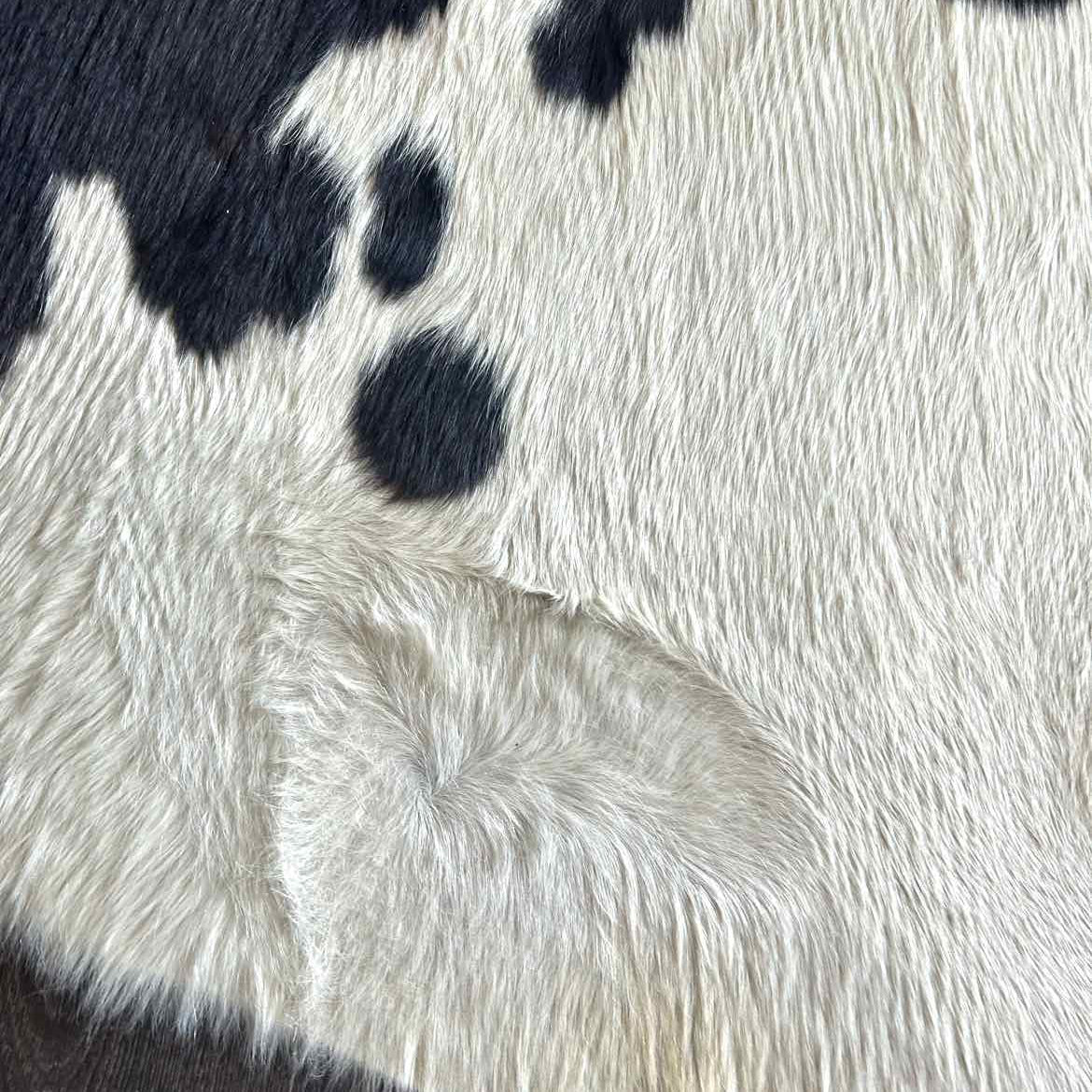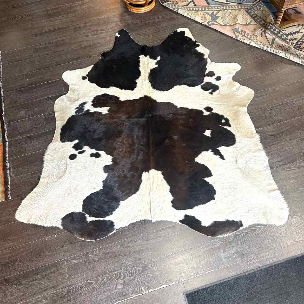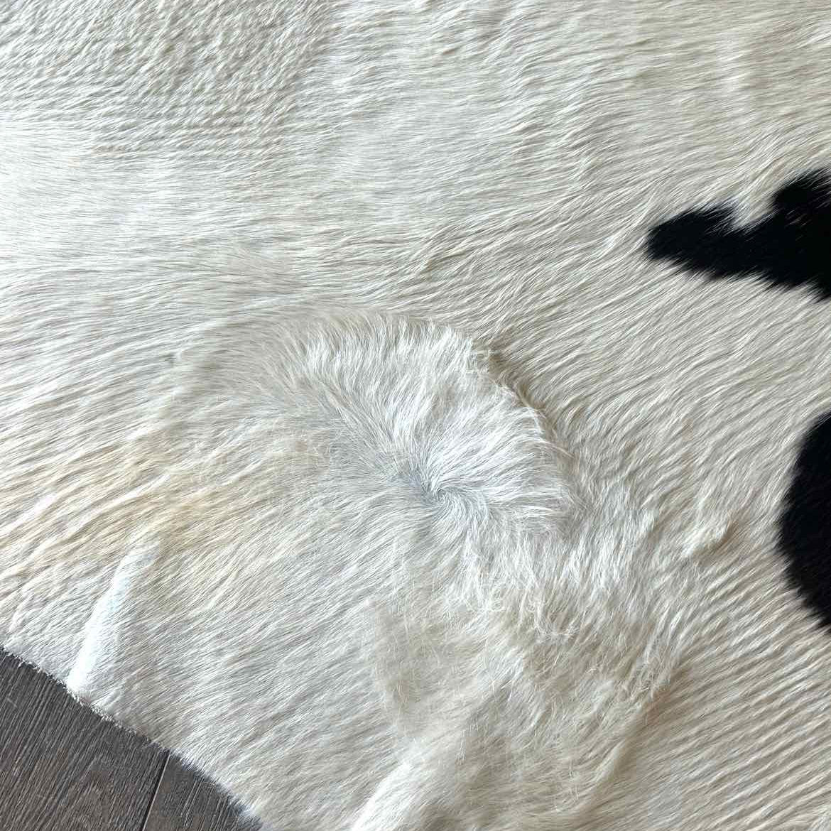 Natural black and white cowhide rug with its own details and imperfections from age. From a smoke free home, in very good secondhand condition. Contact for shipping.