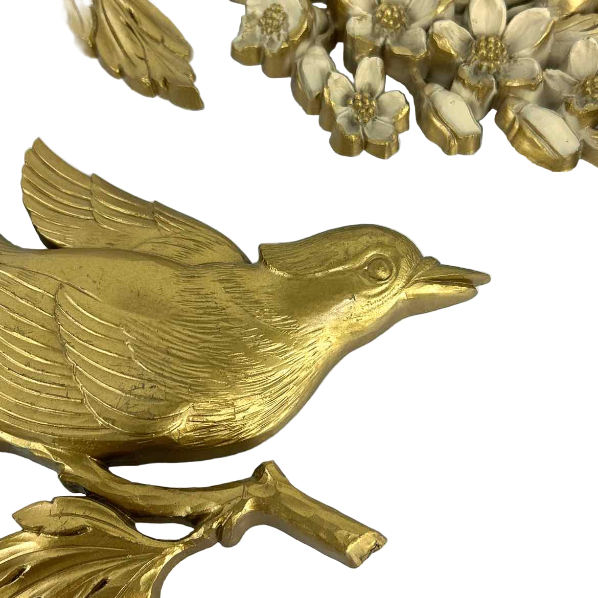 PAIR vintage bird and dogwood flower wall hangings from Syroco, perfect for dressing up a wall with some retro decor. In excellent vintage condition with hangers on the back.