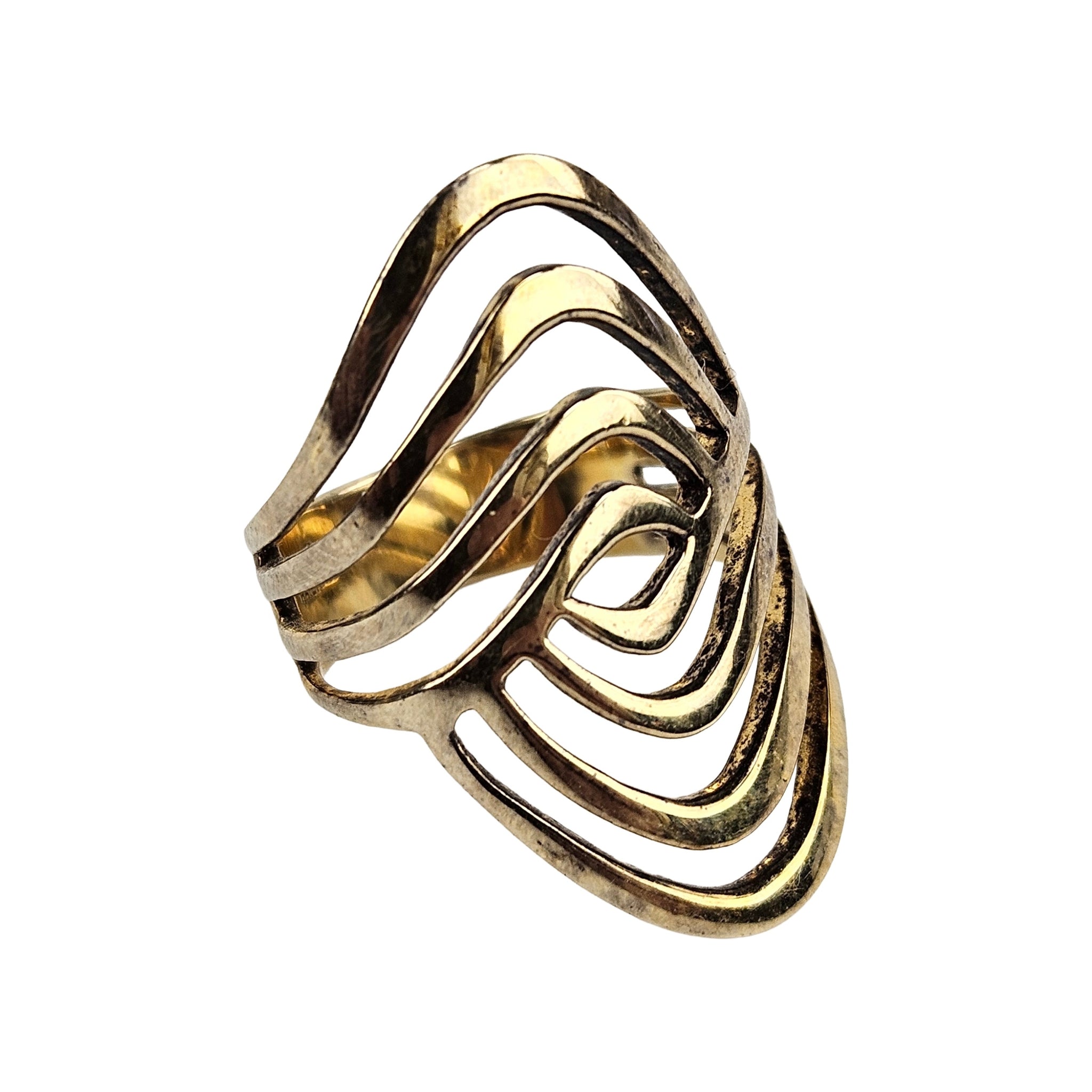 Modern wave design gold tone sterling silver statement ring, stamped .925 and in excellent vintage condition. Made in Thailand, this ring is timelessly stylish and cool.