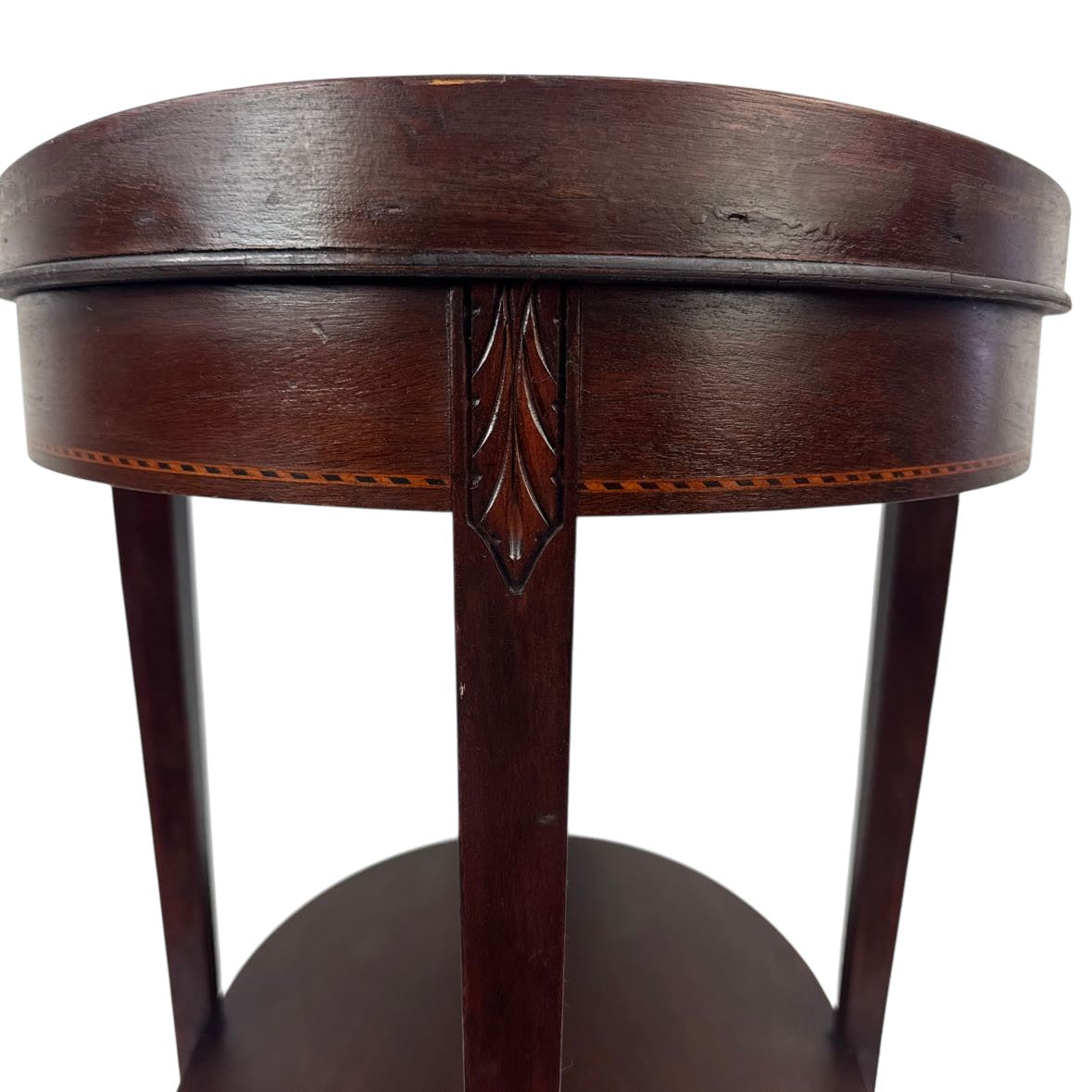 Oval shaped occasional table with two levels in a rich mahogany tone, made by Mersman c. 1950s. In good vintage condition with some overall wear from age and some small repairs. See photos.
