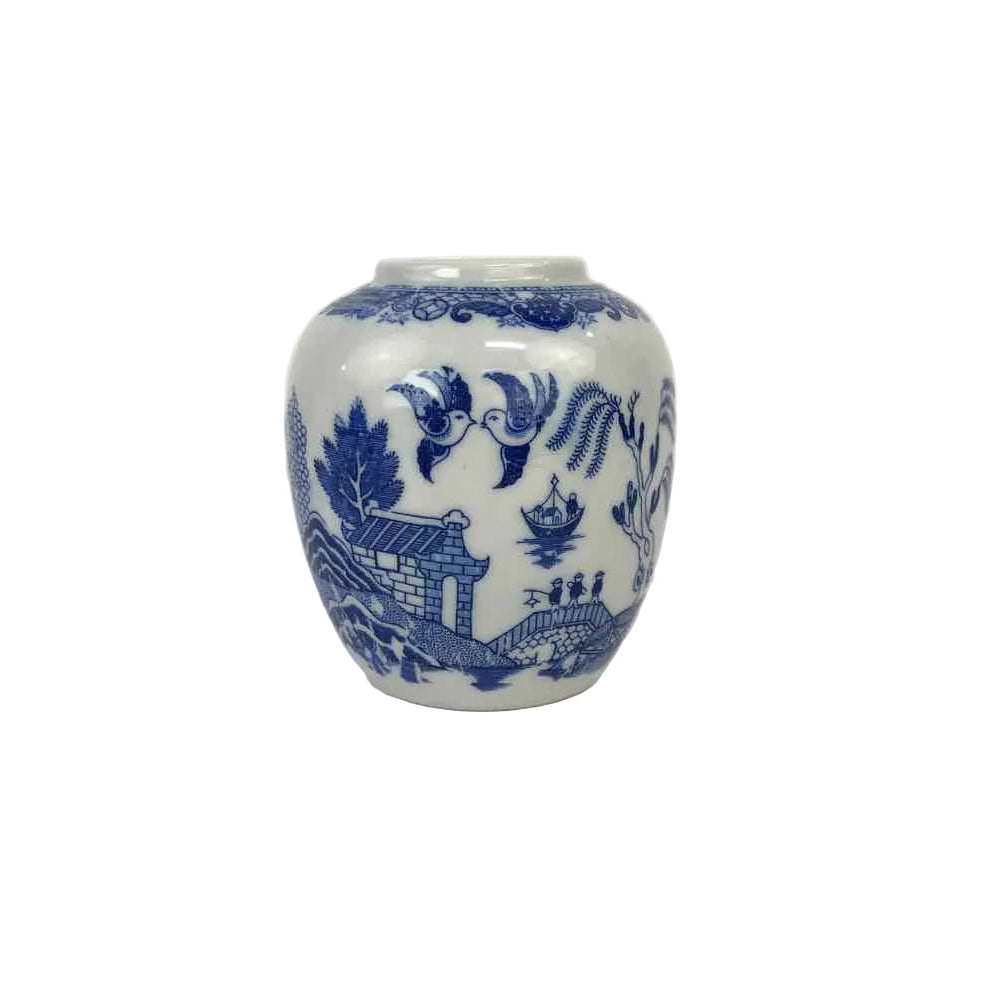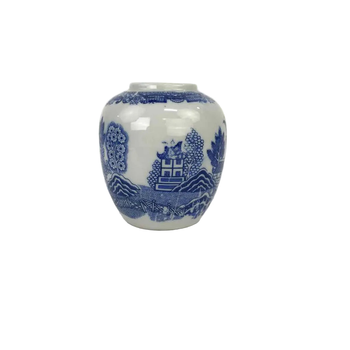 Small porcelain ginger jar in blue and white, made in Japan and in excellent vintage condition.