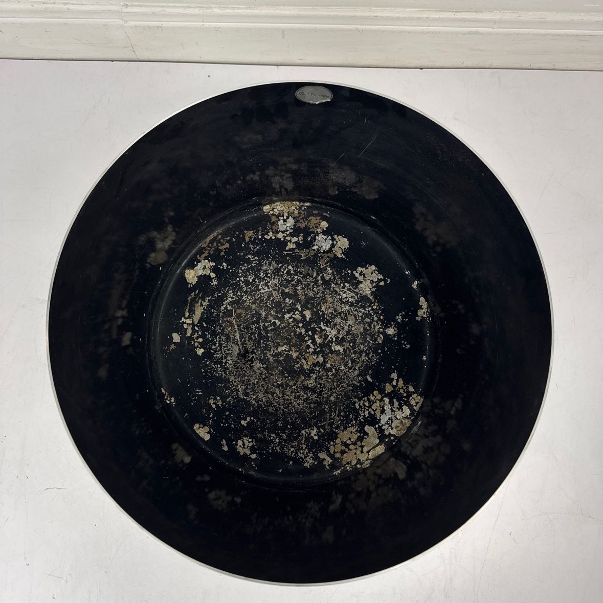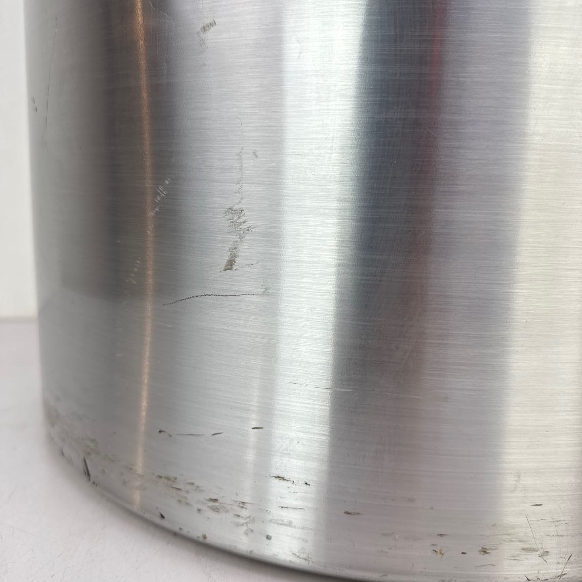Large vintage silver brushed aluminum planter with black painted interior, c. 1970s and originally used for a ficus tree in an oil & gas office. In very good vintage condition with some surface wear and some interior chipping on the black.