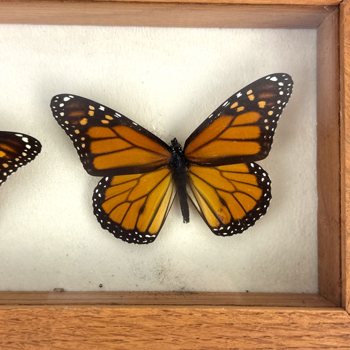 AS-IS Monarch butterfly mount with some parts that have come off. The frame is handmade, solid oak, vintage and ready to hang with a sawtooth hanger as well as a hoop hanger on top.