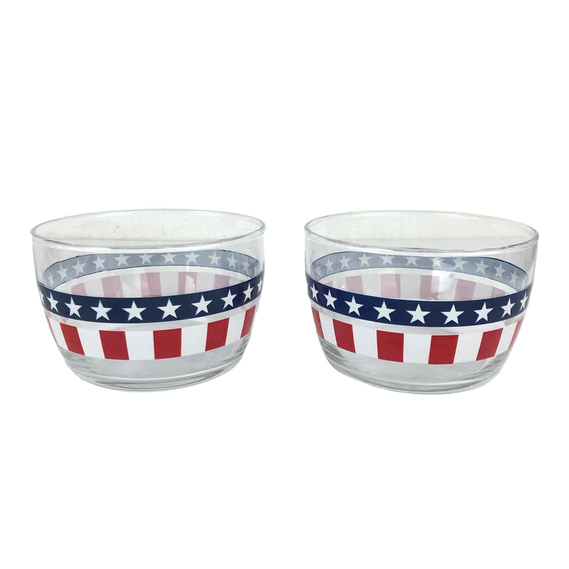 PAIR mid-century stars & stripes snack bowls with red white & blue on all sides. In excellent vintage condition and great for anything from ice cream to nuts!