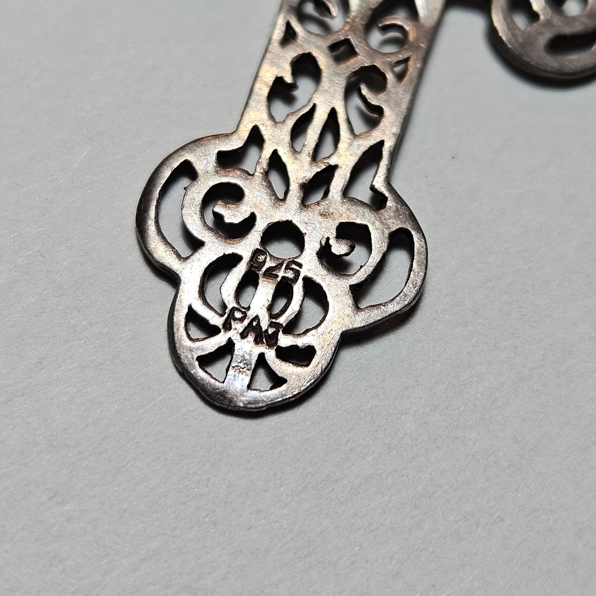 Vintage stamped cutout cross earrings, in very good vintage condition and stamped .925 and initialed PAJ.